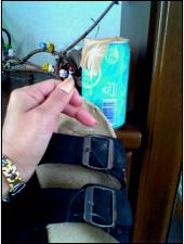 未だに時々玄関から持ってくるスリッパに釣り糸をつけてさくらが持っていくと上から石入り空き缶が振ってくるようにしました。