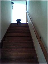 朝寝坊のさくらは起きて直ぐには階段を下りられません(笑) |