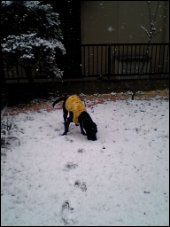 雪には興味はなく、ただ食べられる冷たい物と考えているらしく結構食べまくります。でも寒いのでさっさと家に戻ってきます。(笑)