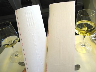 メニューは食事用とドリンク用の2つがあります。飲み物はソフトドリンク、ビールにシャンパン1種、ワインは白2種類、赤2種類、ブランデーなどスピリッツ8種