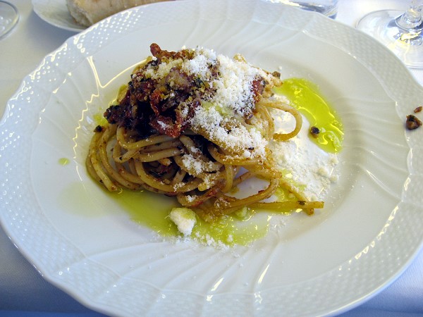 パスタは2つからチョイス出来ます。ショートパスタ"オレキエッテ"ブロッコリーとペコリーのチーズソース和え、と私の選んだヴェルミチゥッリ(極細パスタ)フレッシュトマトソース添えです。