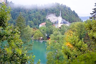 朝方まで降っていた雨は殆ど上がってブレッド湖にはもやがかかって情緒があります