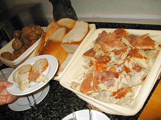 私も魚やお肉を取ってきて赤ワインとともに頂きました。