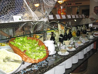 夕食はホテルのバイキングです。リゾートホテルなのでお料理もふんだんにあり、皆さん好きずきにチョイスして食べました。