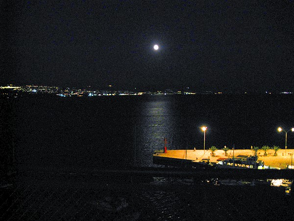 夜が更けて、月も綺麗に出てます。部屋のテラスからの一枚。湿った潮風じゃなく、からっとしてて気持ちいい気温で、素敵な夜ですねぇ〜
