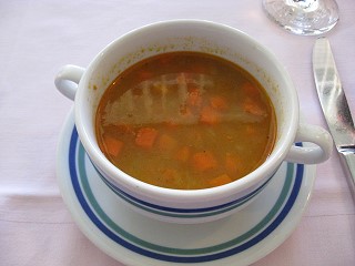 スープはリカ地方特有の野菜とお肉の煮込みスープ。