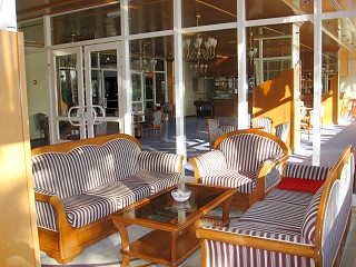良いホテルだったので名残惜しいです、、、。ロビー階の海に面したテラス席 |