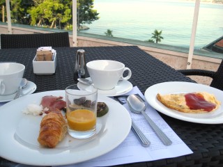 海側にテラス席があったのでこちらで頂くことにしました。爽やかで暑くも寒くもない非常に気持ちの良い朝ですよ〜