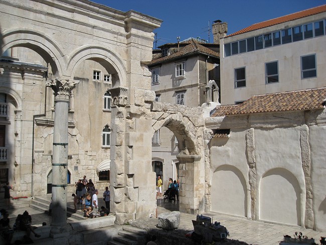 城壁で囲まれたディオクレアヌス宮殿に入る入り口は限られていまして、十字路になっているので迷子になる事もあまりないようです。この入り口から入ります