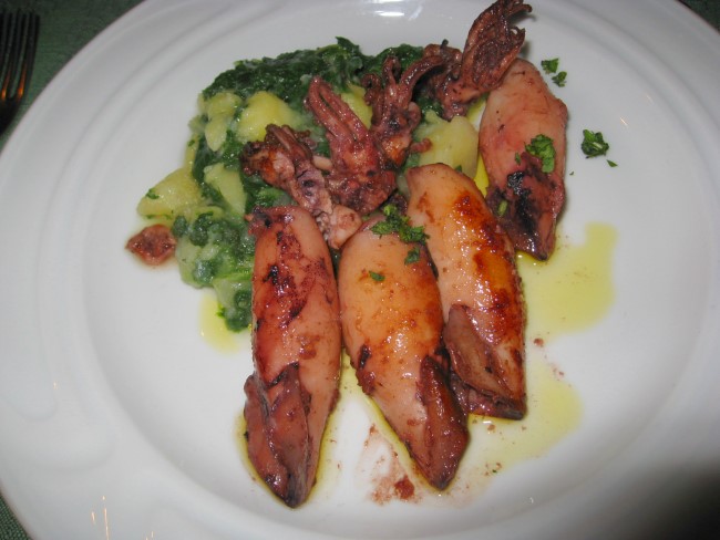 イカのグリル。こちらは非常に日本人の口に合います。白ワイン20クーナと共に