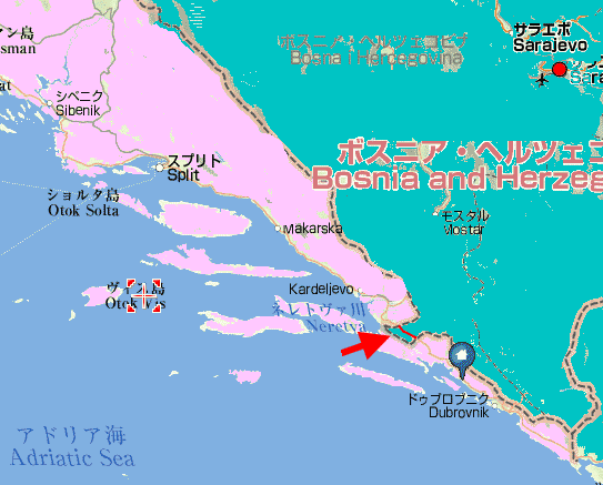 ピンクの色の部分がクロアチア、でも一カ所ボスニアヘルチェゴビナと隣接しているため、たった15分ですが通過してまたクロアチアに入国。そのたんびに税関に賄賂を渡していたバスの運転手は大変そうでした