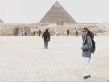 ラクダ怖いよ〜 | このラクダが実はとっても怖い体験でラクダが座っているところに乗って立ち上がる時にそれはそれは怖いのだ!二人は「ぎゃ〜!!」と雄叫びをあげてラクダに揺られるのであった。「♪月の砂漠は〜」ラクダを先導してくれたのはまだ少年。少年曰く「ねー、そのサングラスとこのサングラス交換しようよ!」(いいけど・・・、これ5ドルで買った安物だけど・・・?^^;はっはっはっ)きっと観光客のサングラスとどんどん交換していっているのだろうね。わらしべ長者になれたらいいけど? |