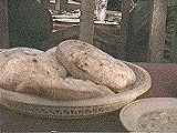 エジプトのパン | 平べったいパンエイシ。店の前の釜でおばさんが焼いていた。 |