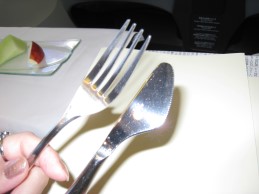 ナイフとフォークを見てある事に気が付きました。み、短い…。テロ防止&重量軽減策なのかな