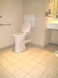 このトイレ、何と私達の身長では足がブラブラしちゃいました