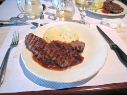 メインディッシュはお肉。これがかなり固いぞぉ〜でもソースは美味しい