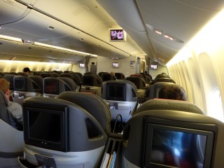 通常の飛行機だとビジネスクラスの席は1機に20〜30席程度ですが、この飛行機は何と二階の3/2がビジネスクラス。総数80席もビジネスクラスがあるんです。