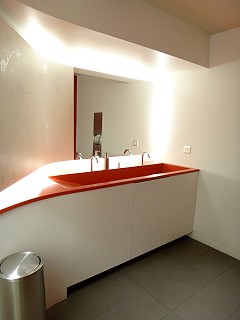 トイレも白と赤で統一 |