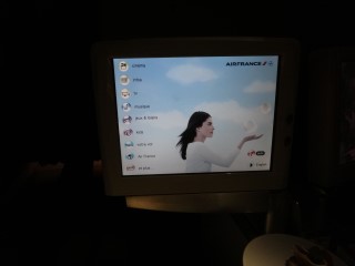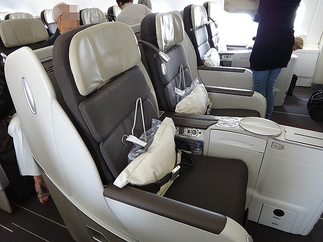 | JALで予約できる最前列を取りましたが、お隣に大きな身体のフランス人のおじさんが座っておりました。 |