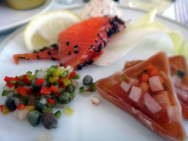 サーモンとハム入りアスピックがとても美味しかった |