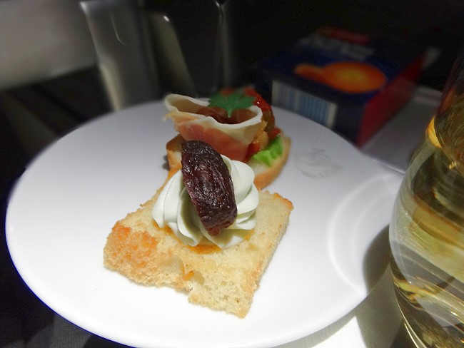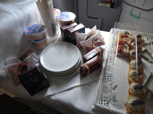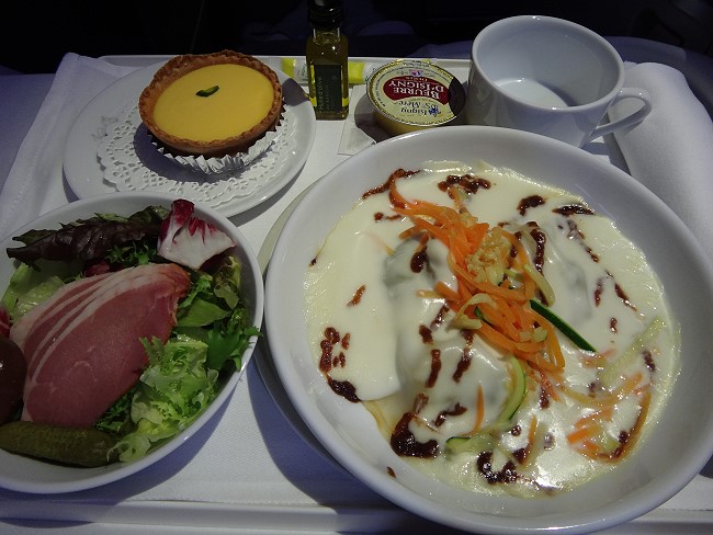 お隣のフランス人のおっちゃんがスピーカーから漏れる大音量で映画を見ながらいびきをかいて寝ていたので、余計眠れるわけもなく、だらだらとしていたら2回目の食事が出てきました。 |
