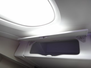 A380の窓際は鋭角に窓が来るために横に小物入れのボックスがありました。