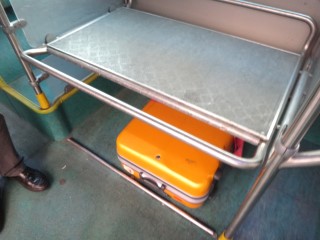| 大体15分ごとの運行だと思いますが私が乗ったらすぐに出発。2両編成のパスでしたが乗客は数人しか乗ってませんでした。なので荷物置き場にも私の荷物しかありません。定員いっぱいだったら置き場がなかったかもしれないけど |