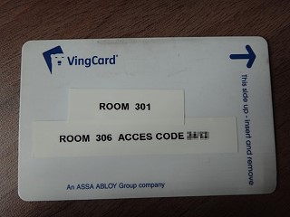 | ルームキーはフロントのお姉さんがチェックインの時に紙を上に貼ってくれた簡単な作りだ |