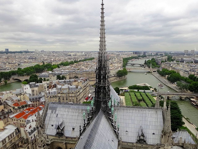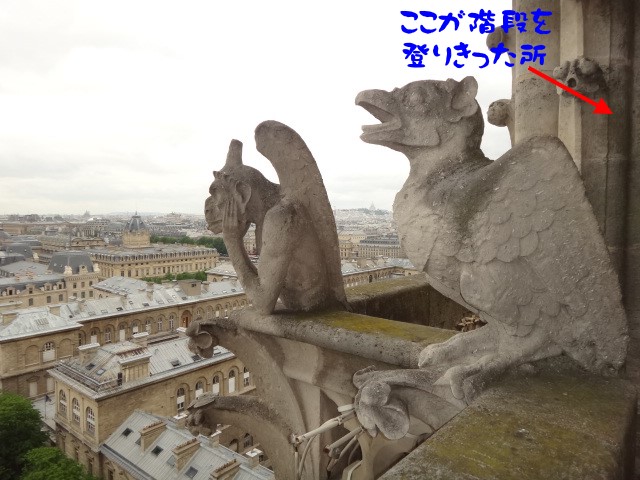 私が今回「ノートルダム大聖堂」に来たかった最大の理由は 「キマイラの回廊」を見たいから。塔の横から400段の階段を上がるとそれはありますが、まぁー、こちらも長蛇の列でした。