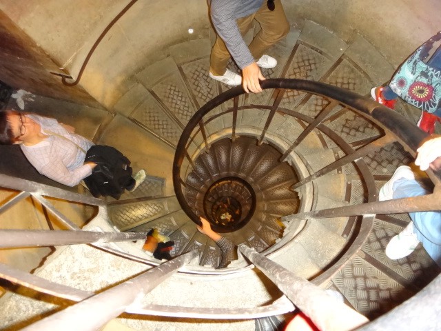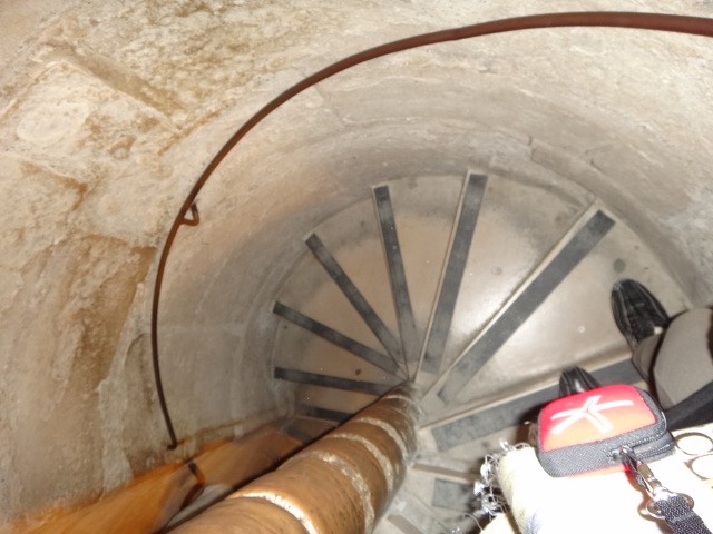 | えっちらおっちら。すり減ってしまった螺旋階段をひたすら登ります。 |