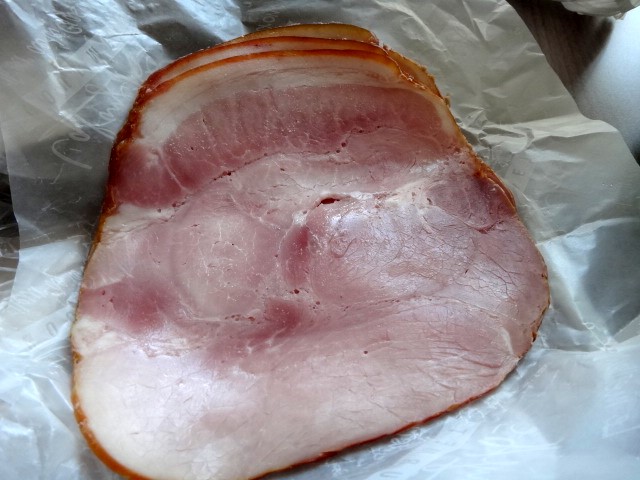 昨日までの生ハム+このハムもスライスしてもらいました。これ凄く大きいんです。20センチくらいあるかしら。3枚買っても180円だって