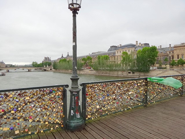 「フランス学士院」の前の「ポン・デ・ザール橋」はパリの恋人たちは必ず訪れる場所だそうで鍵がいっぱい付いてます。