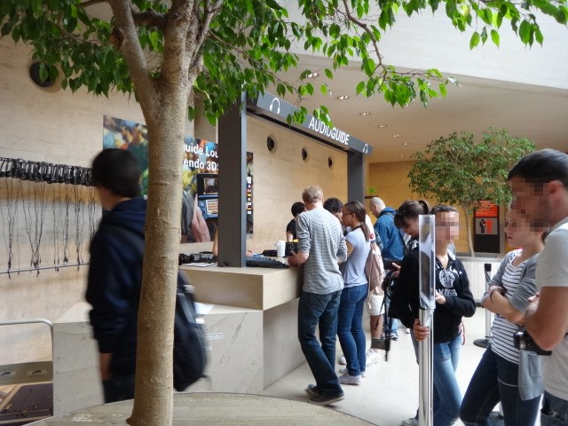 | チケット売り場も今日は無料開放日なので殆ど並んでいません。ここでは音声ガイドを借りる為のチケットを購入。5ユーロです。 |