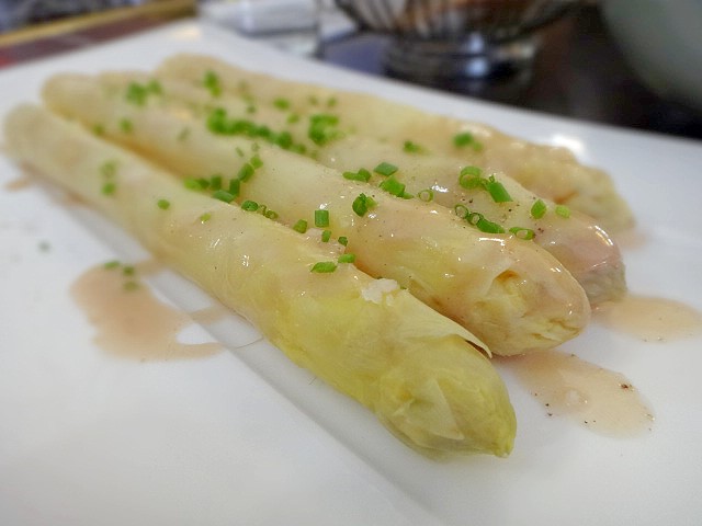 食べてみたかったんです、この時期お薦めらしいので。日本ではホワイトアスパラガスの生なんて見たこともないですが。