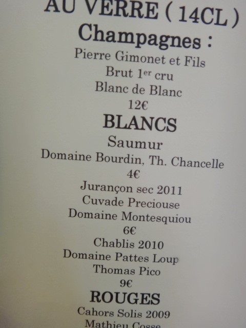 良くわからないのでメニューの真ん中の白ワイン を飲んだのだ。 |