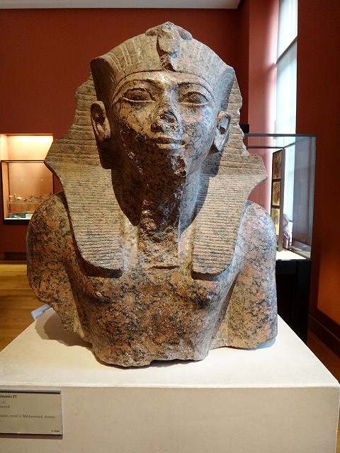 | テルエルアマルナに首都を移し、アテン神を唯一神として信仰したため、神官や貴族たちとの確執が出来てしまい、新王朝時代の衰退へとつながってしまった変わり者の王様なんです |