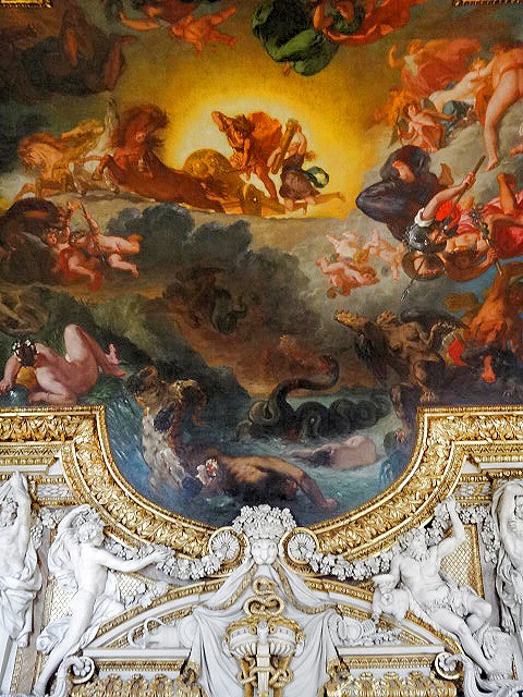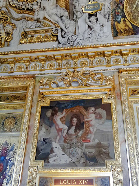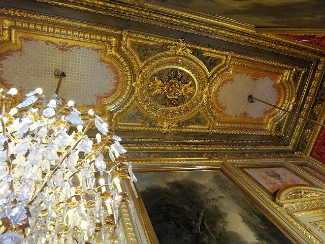 フランス王家の宝飾品が展示されています。天井もゴージャスやわぁ〜 |