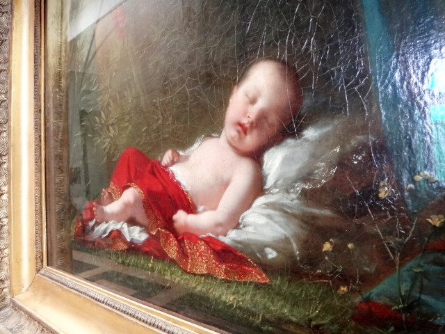 この赤ちゃんの寝顔が可愛くて〜。室内の照明のかげんでこの方向でしか撮れなかった のが残念だわ |
