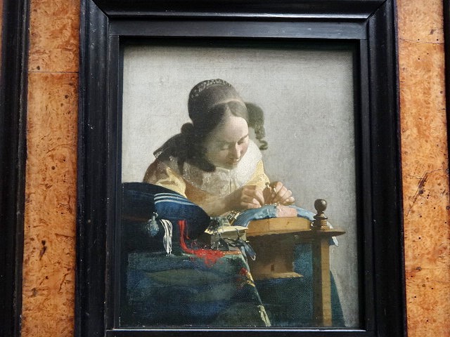 | これも日本じゃ有名ですね。「レースを編む女」ヨハネス・フェルメールの作品 |