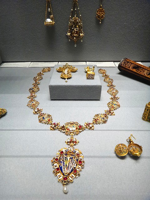 | 中の宝飾品もさることながら、この展示枠も豪華っぽく作ってあるなー。 |