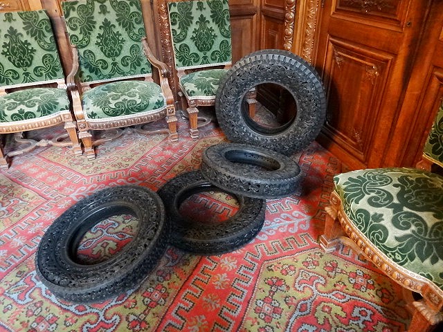 あら〜、ここに残念なオブジェがありますね。綺麗に彫刻されてますがタイヤに変わりはない |