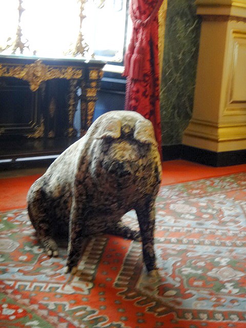 | このスチール製?の彫刻類も一見あたかもその当時の物のように写りこんでますが、単に現代彫刻品が展示されているだけ・・・。まぁ、まだマシな方か。 |