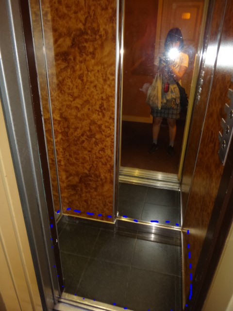 まずびっくりしたのはこのエレベーター。超小っさいのー。人が2人位しか乗れへんよ |
