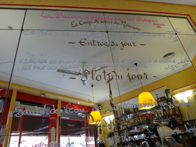 お店の壁が鏡になっていて、そこに本日のお薦めメニューが書いてありました。 |