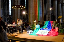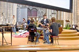 教会の中で何かコンサートがあるらしく今風のセットが準備されていました