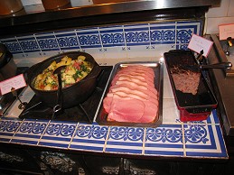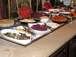 でもここのお店は日本でいうところのランチサービスがあって食べ放題なのだと思う料理が並んでました