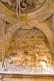 時計塔の真下から上を見上げるとこんな立派な彫刻が彫られてました
