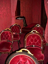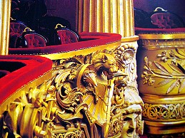 ボックス席はふかふかの赤いビロードの絨毯が敷き詰められていて、椅子は自由に動かせて、そのボックスに早く入った人が前の席を取れる仕組みのようでした。