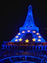 一番綺麗だったのはこの「エッフェル塔」普段はこんなブルーじゃないらしい。今年はユーロ議長国だからこんな色なんだって