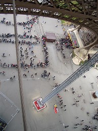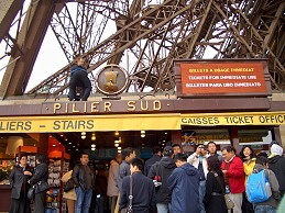 エッフェル塔」には4つ足の所にエレベーターと階段があって、どこの足も長蛇の列。